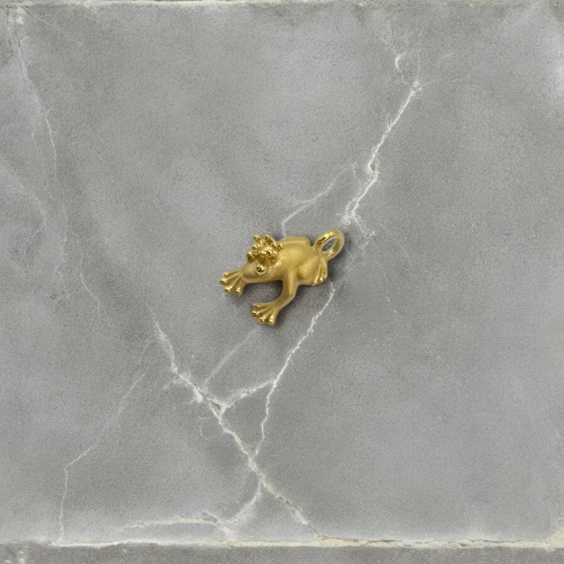 Der Kinga Anhänger vereint märchenhaften Charme mit symbolischer Tiefe. Als Froschkönig steht er für Transformation, Glück und verborgene Schätze – ein Zeichen dafür, dass in allem etwas Magisches steckt. Gefertigt aus 925er Sterling Silber und veredelt mit einer 18K Vergoldung (1 Mikron), bringt Kinga Eleganz und einen Hauch von Märchenzauber in dein Schmuckkästchen.